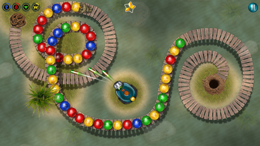 Marble shooter game at beautiful garden. Shoot and match marbles to protect your beautiful garden agains evil golems. Marbles Garden is match-3 marble shooter puzzle. Your goal is to protect your beautiful garden against evil golems. Special projectiles and other bonuses, which you can upgrade during the game for collected stars, will also help you with that. Key features of the game: -60 beautiful levels -14 upgradable powerups -Live environment -Well known gameplay mechanics -Epic music